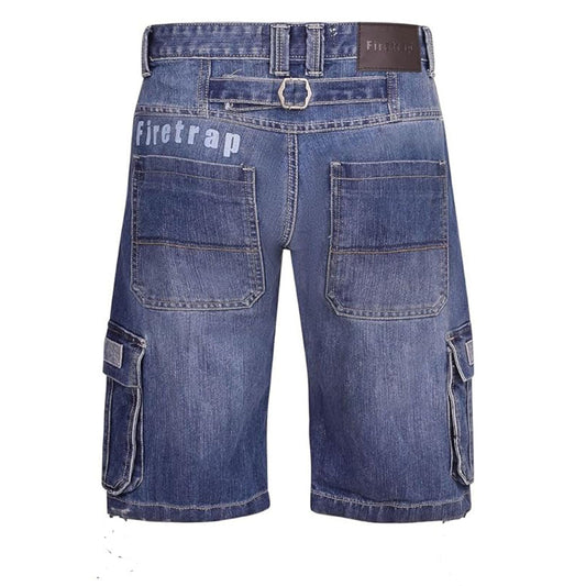 Stone Wash Denim Knee Length Cargo Shorts PSM-8873