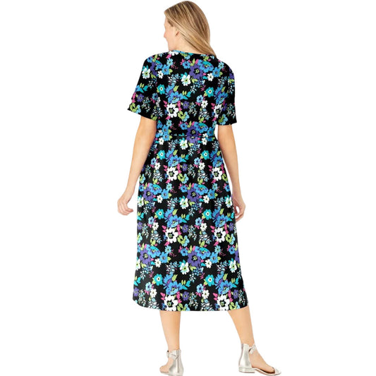 Black Multi Garden Button Front Essential Dress PSW-7401