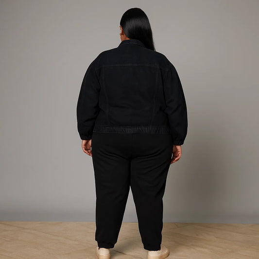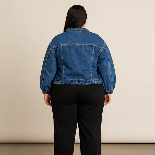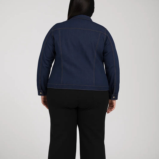 • Plus Size Women’s Denim Jacket – A timeless classic that pairs perfectly with jeans, dresses, or trousers.