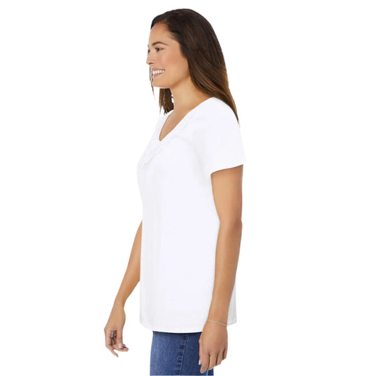 White Plus Size Women Tie Detail T-Shirt PSW-5456