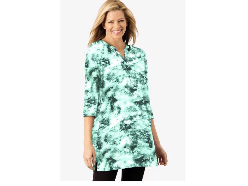 Aquamarine Tie Dye Plus Size Women Notch Neck Tunic PSW-4869