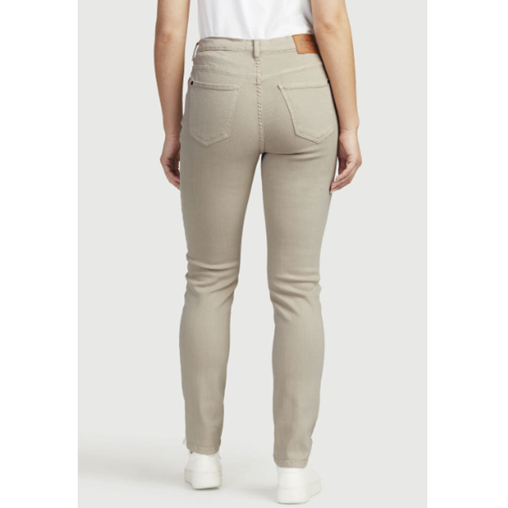 Outer fabric material: 98% cotton, 2% elastaneFabric: Denim• Zipper fly • Waistband with gussets • Comfortable elastic on the sides • Decorative stitching on the back pockets • Normal high waist • Figure-hugging fit • Straight leg ends