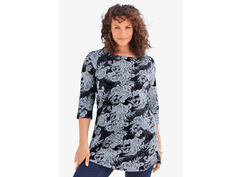 Black Bandana Paisley Boatneck Ultimate Tunic with Side Slits PSW-6828
