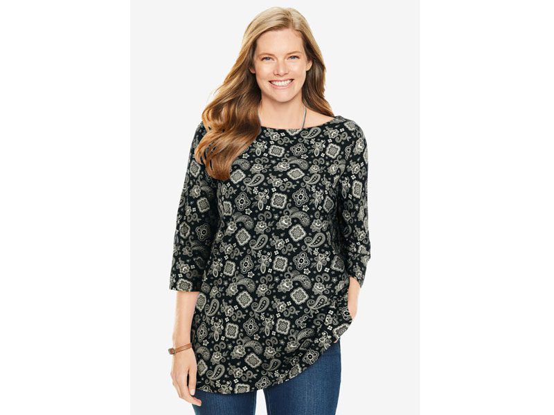 Black Bandana Paisley Perfect Printed Boatneck Tee PSW-6942
