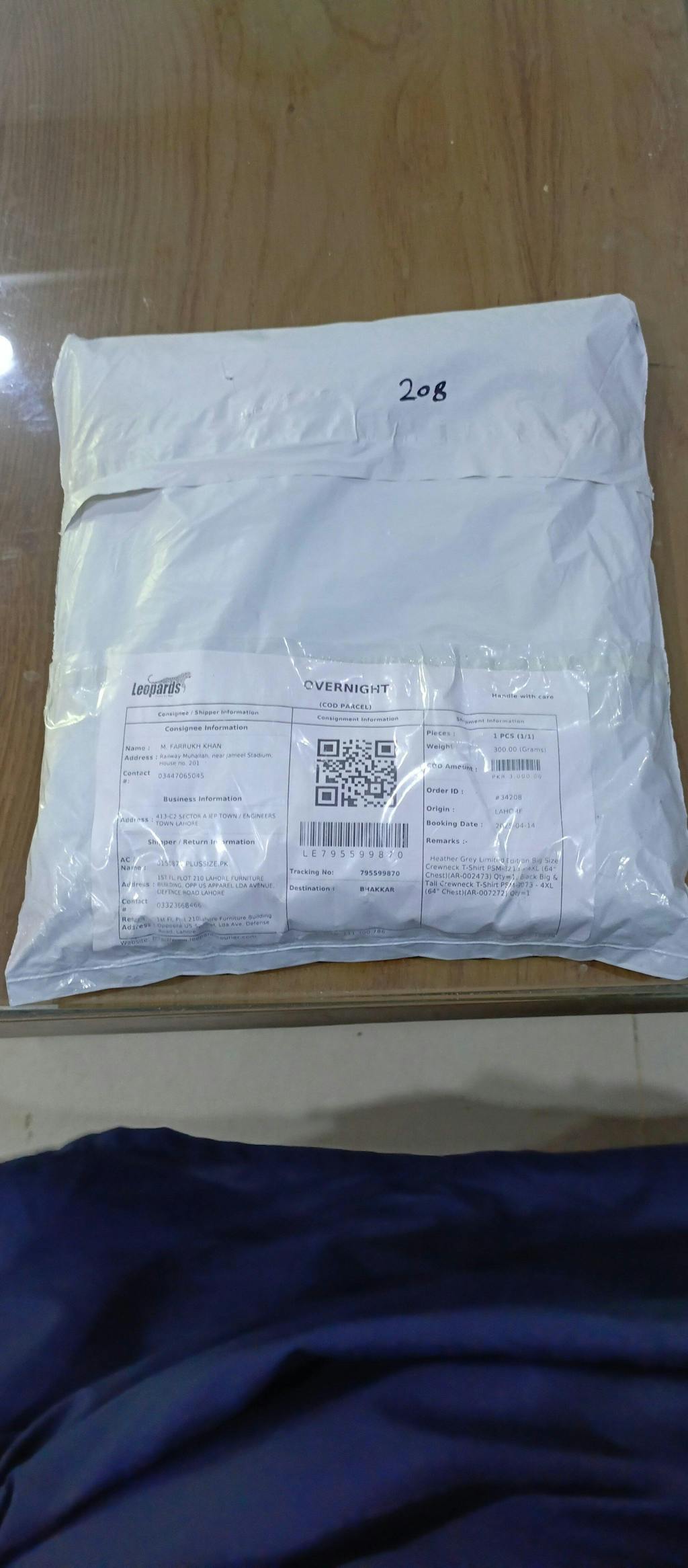 Right now, we are using Leopards and DAEWOO Fastex as our primary couriers.