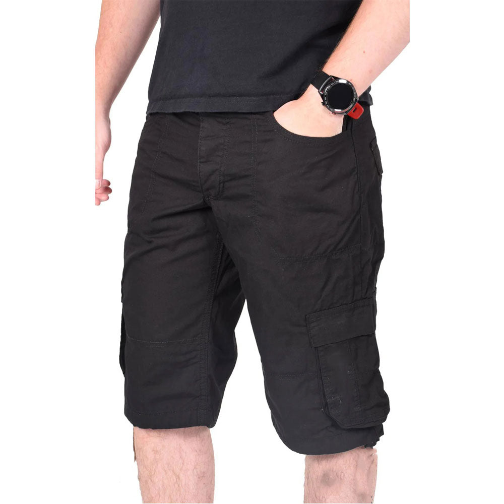 Black Chino Cotton Combat Cargo Shorts PSM-8885