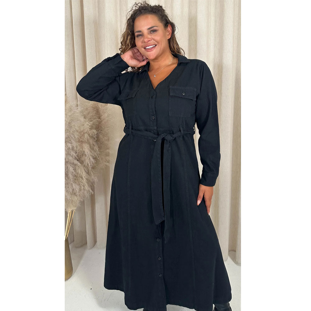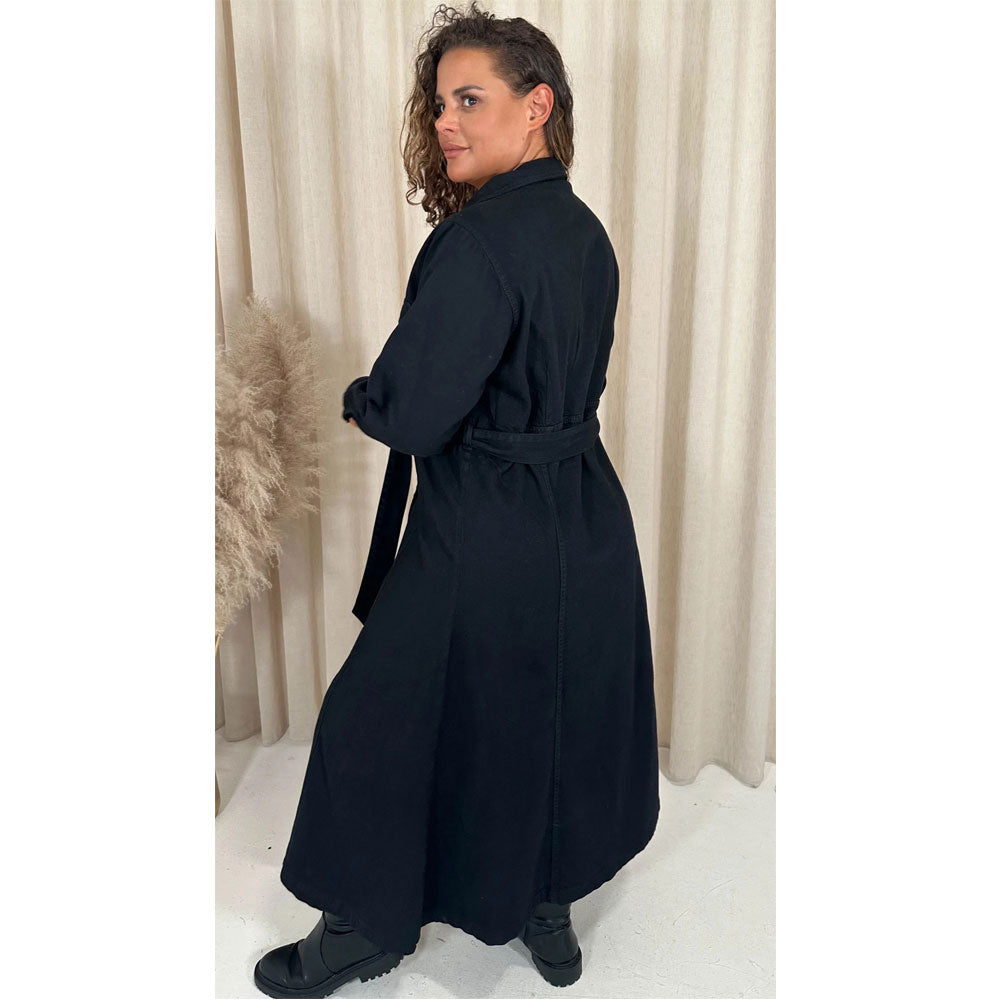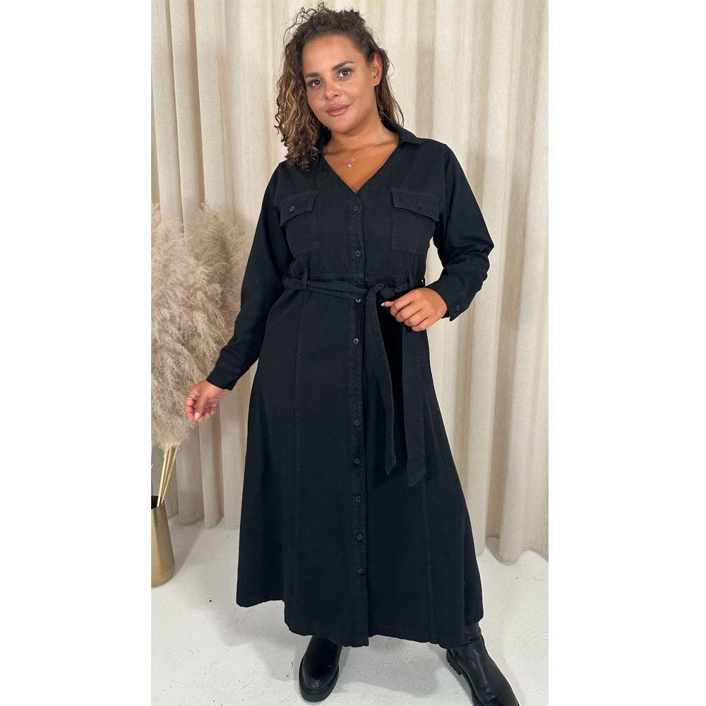 Black Denim Midaxi Without Belt Shirt Dress PSW-8865