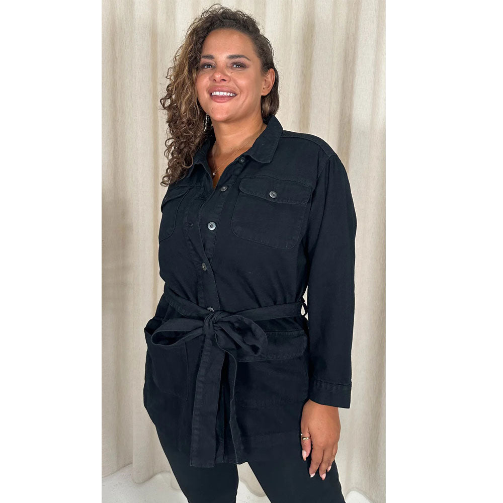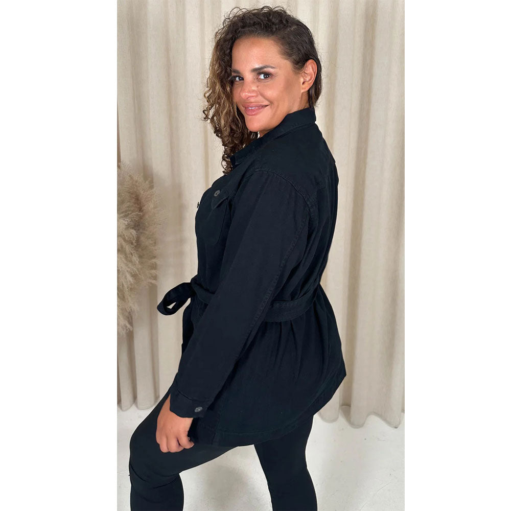 Embrace timeless style with the Black Denim Without Belt Long Sleeve Jacket. This classic jacket is crafted from high-quality denim in a versatile indigo blue wash. The long sleeves and relaxed fit provide both warmth and comfort, making it perfect for layering or wearing on its own.
