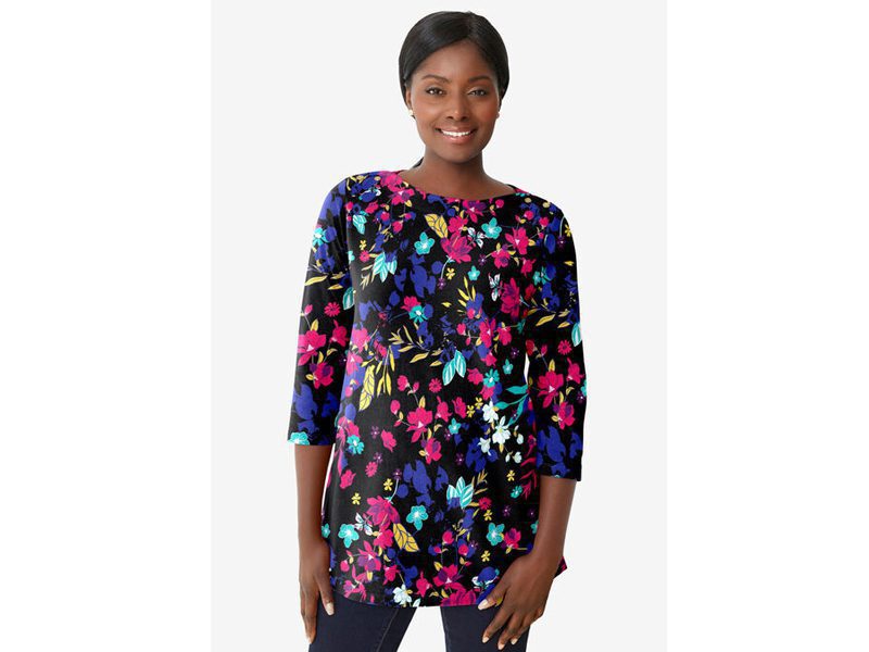 Black Garden Floral Printed Boatneck Tunic PSW-6428