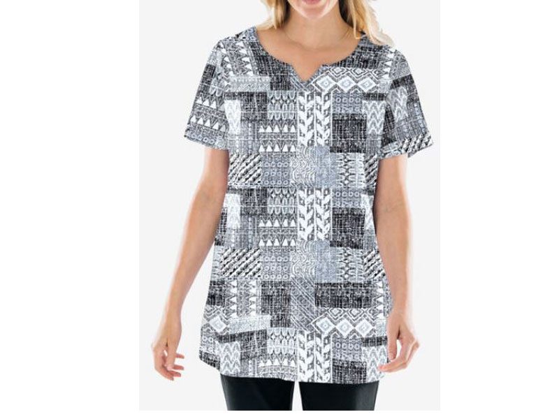 Black Geo Patchwork Knit Plus Size Women Tunic PSW-5540