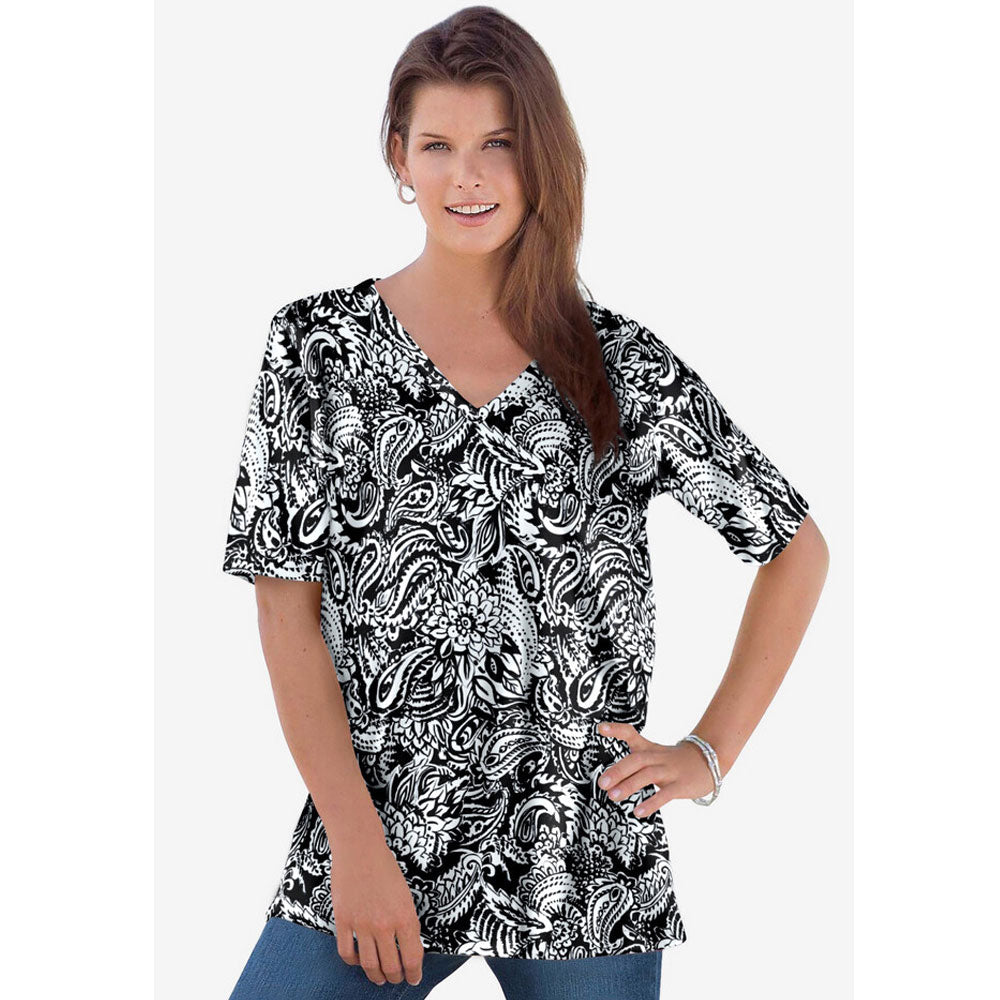 Black Graphic Paisley V-Neck Ultimate Top PSW-8148