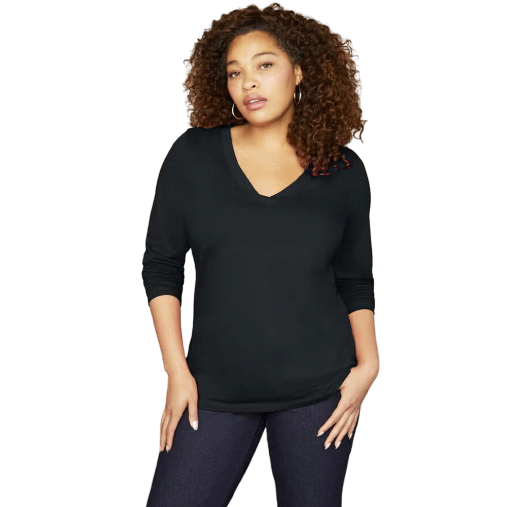 Black Long-Sleeve V-Neck Tunic PSW-9273