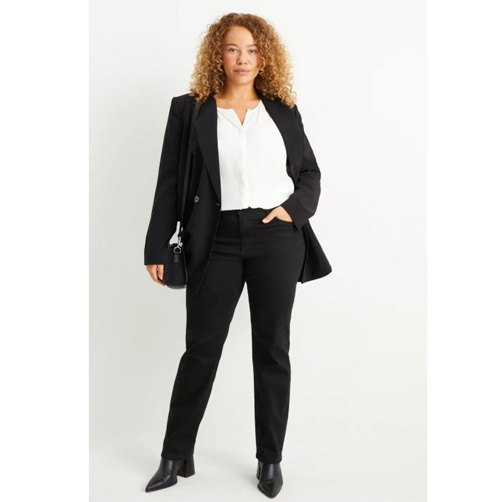 5-pocket jeans in cotton denim with a slight stretch for good comfort. Slim leg with a straight fit from the waist to the hem. High waist with a zip fly and button. Regular length, designed to hit the top of the foot with little or no stacking. A silhouette that never goes out of style.