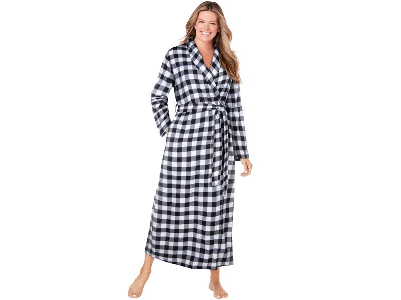 This ultrasoft cotton flannel robe is so cozy you'll never want to take it off. Made with a shawl collar in an extra-long length, it will keep you covered comfortably. A self-tie belt holds it closed.