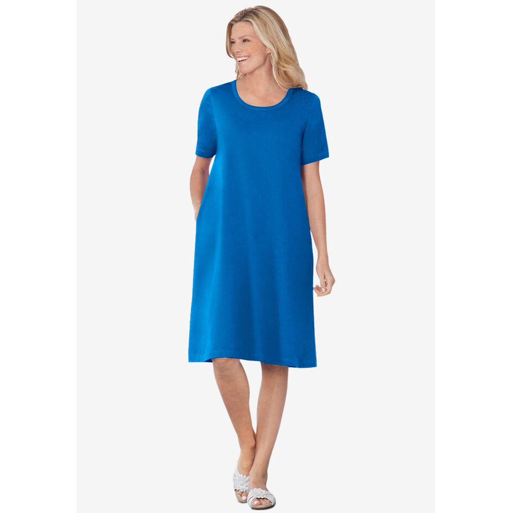 Bright Cobalt Short-Sleeve Crewneck Tee Dress PSW-8226