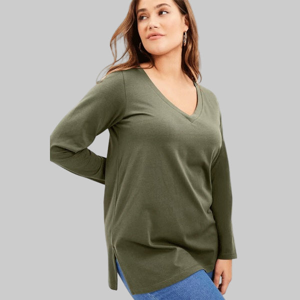 Dark Olive Green Long-Sleeve V-Neck Tunic PSW-9204
