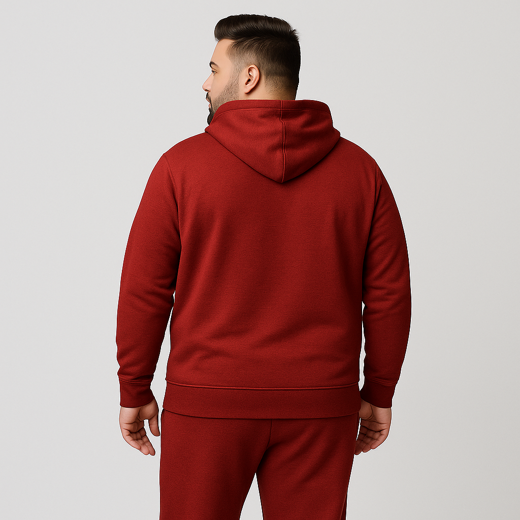 It comes with a front kangaroo pocket, adjustable drawstrings, and ribbed cuffs and hem for a clean, structured finish. Perfect for casual outings, lounging, or layering on cooler days.