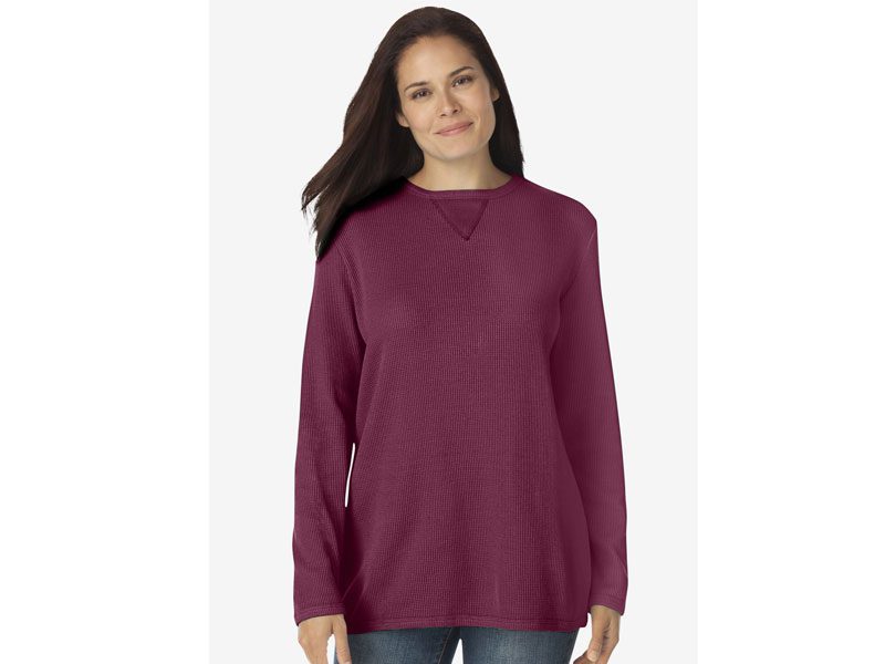 - Your favorite thermal fabric now comes in a sweatshirt style. Made in a relaxed fit with a classic V-stitched neckline, this promises to be your go-to for great texture, color and fit. Stay comfortable in this casual long-sleeved style.