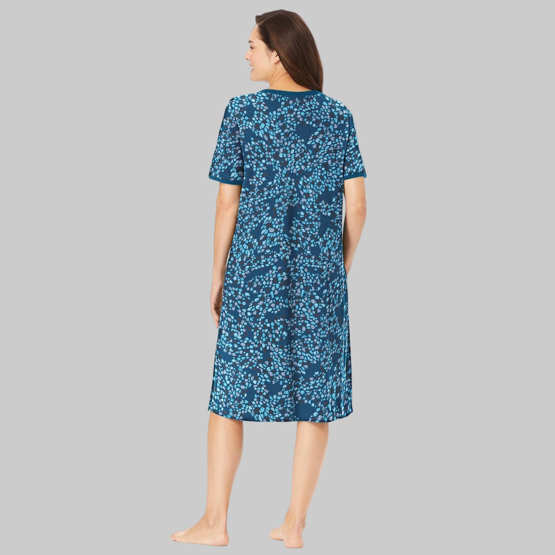 - Prettify your lounge routine with this delightful sleep dress that's cute and comfy. A trapeze silhouette in a breezy cotton blend leaves plenty of room to move, and an open V-neck and short sleeves are relaxed and breathable while you sleep.