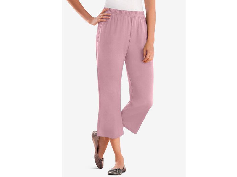 - Our knits provide ultimate comfort, and these straight-leg capris with an elastic waistband feel amazing all day long. Made in an easy pull-on design, these will become your new go-to for running errands, casual days or lounging around the house. Versatility at its best, made with side seam pockets.