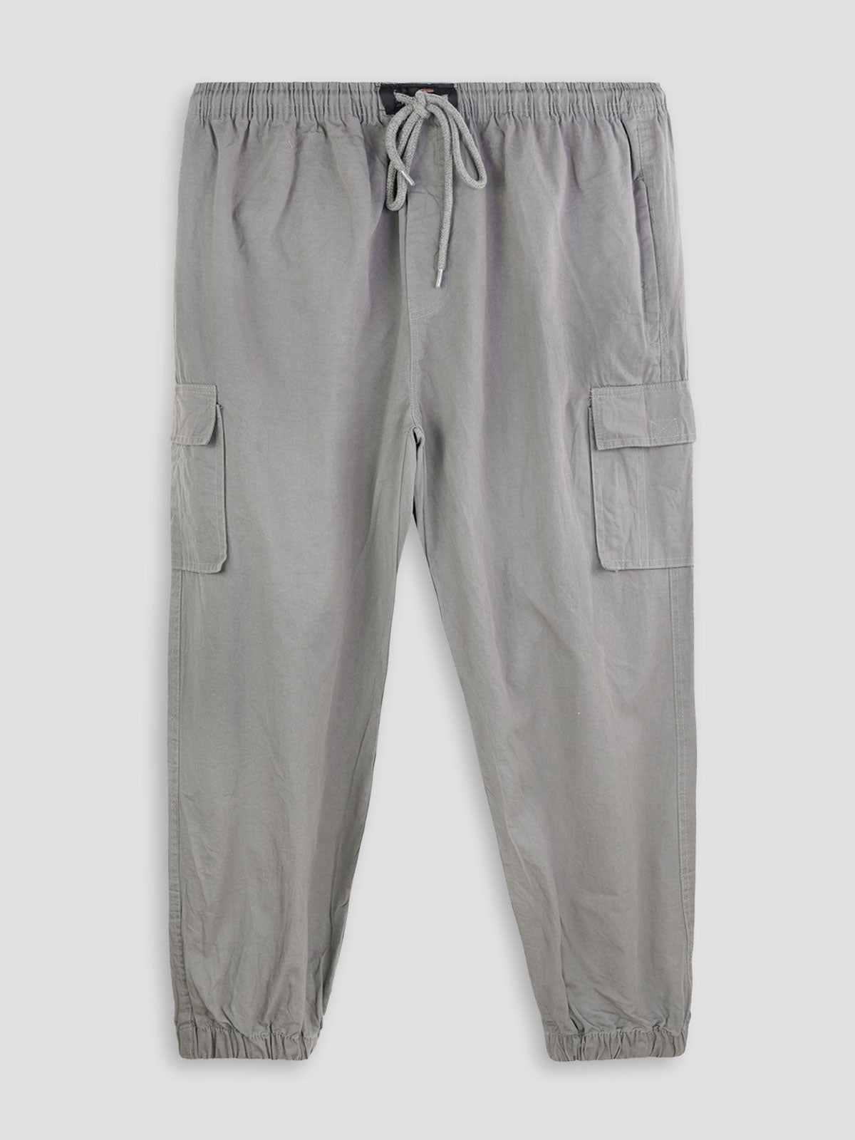 Grey Plus-Size Cargo Cotton Joggers PSM-8810