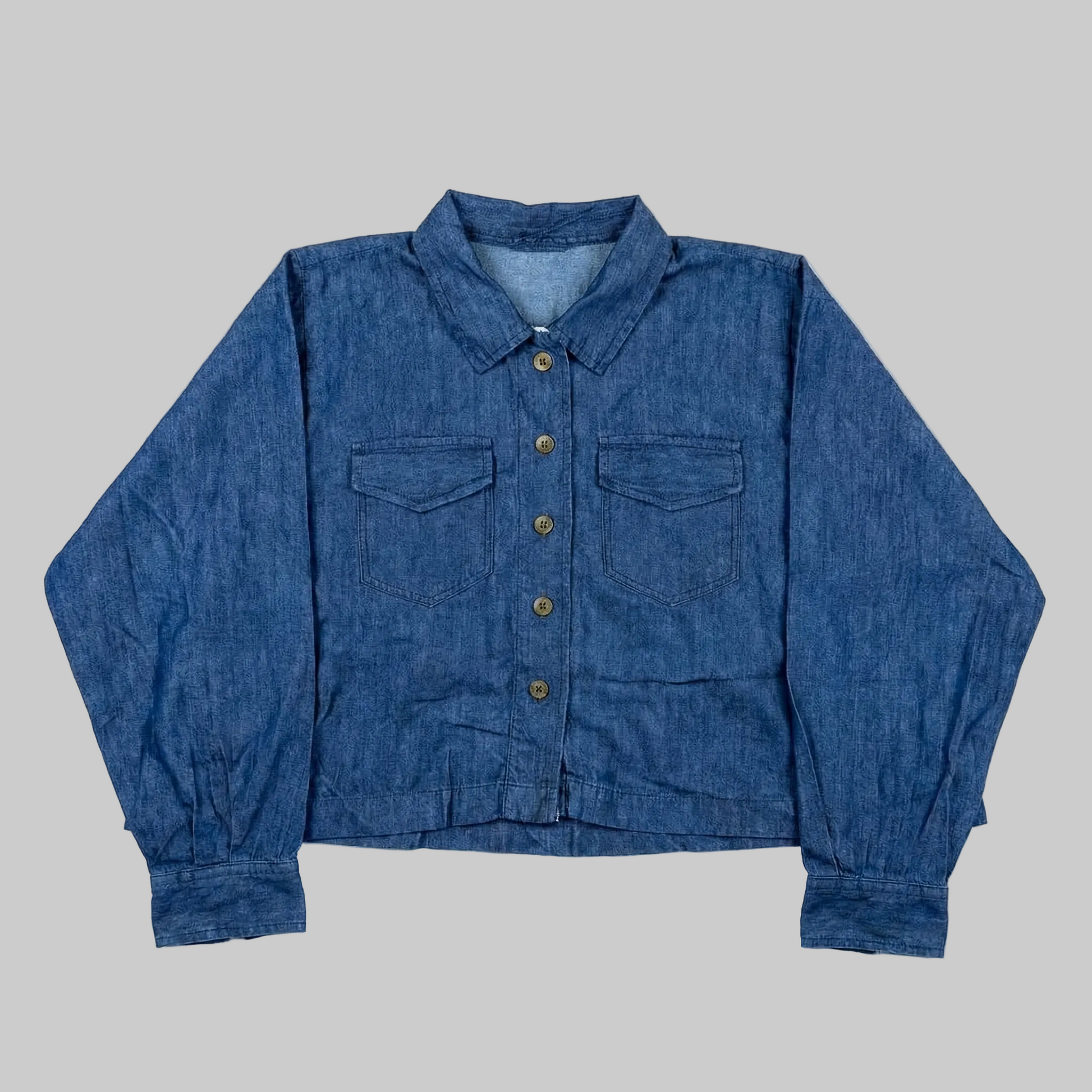 The button-down front and structured shirt collar add a timeless touch, while functional chest pockets enhance practicality. Perfect for casual outings, travel, or weekend wear, this dress combines classic denim charm with modern modest fashion.
