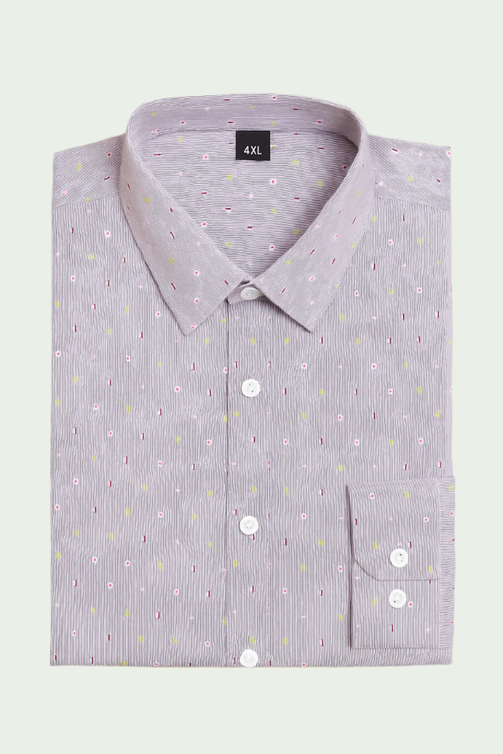 Step into elegance with this Lavender Micro-Dot Formal Shirt, specially tailored for plus-size men. Crafted from a premium breathable fabric, this shirt features subtle micro-dot detailing that adds sophistication without overpowering your style. The full-sleeve design, button-down front, and crisp collar make it ideal for office wear, formal events, or smart-casual occasions.