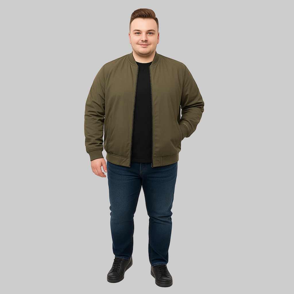 Light Olive Plus-Size Bomber Jacket – Matte Finish PSM-10083