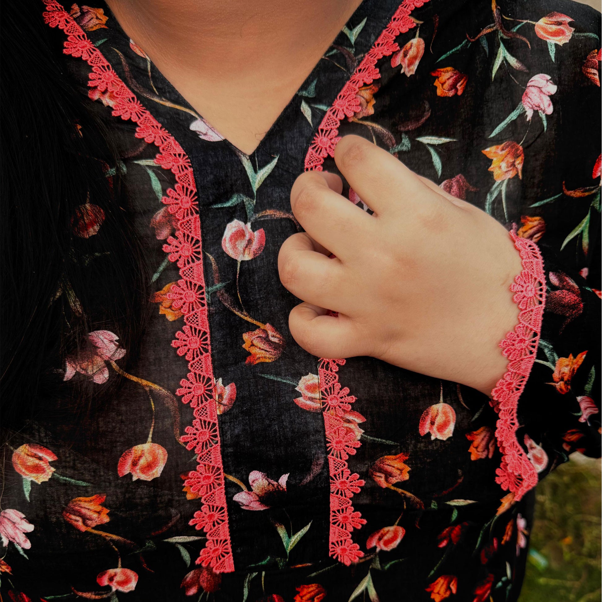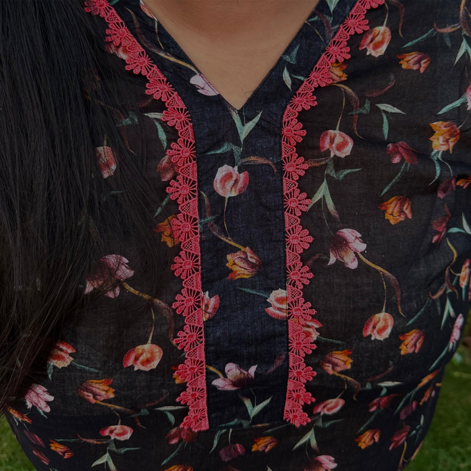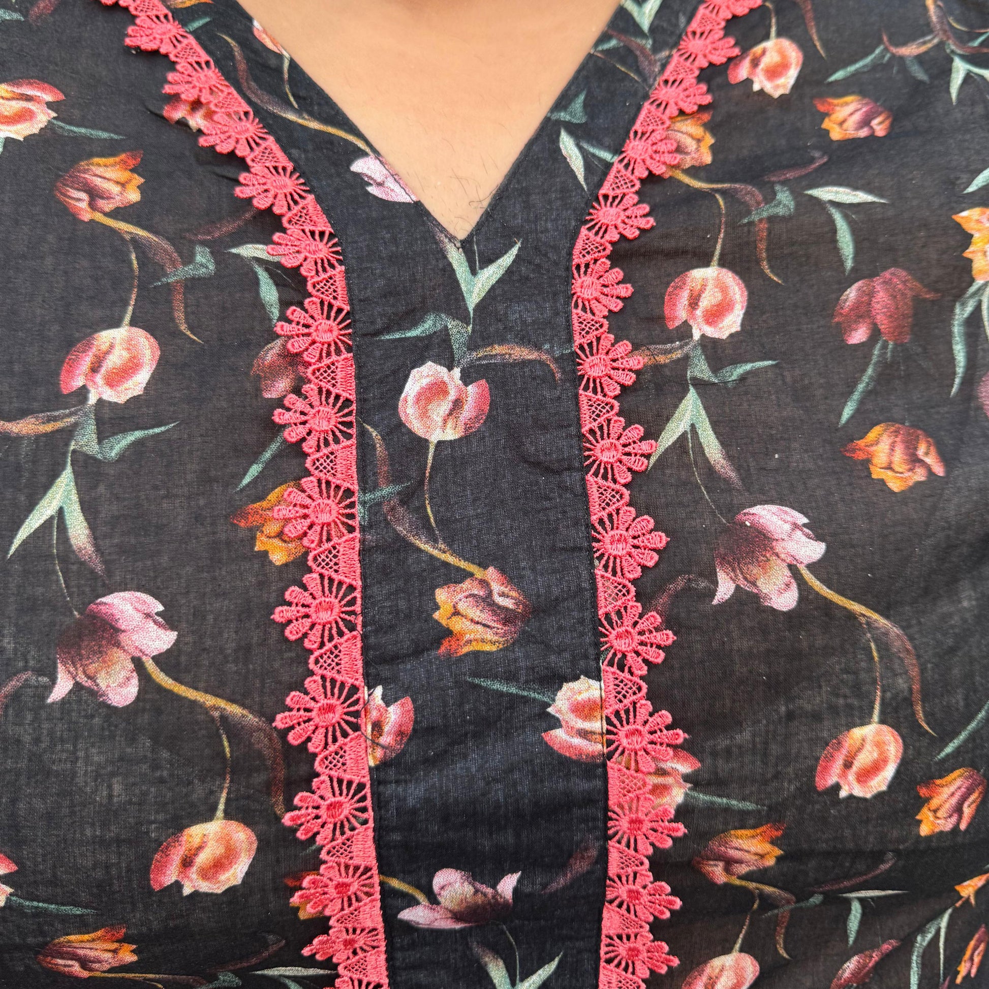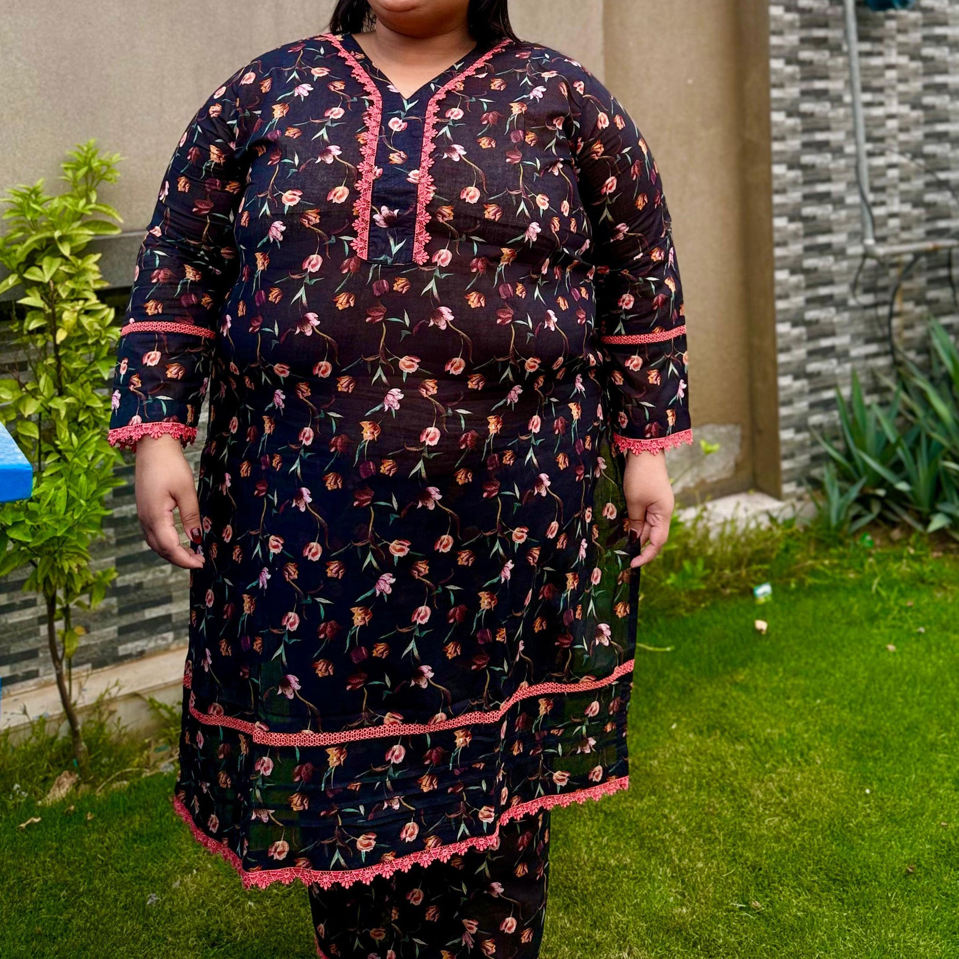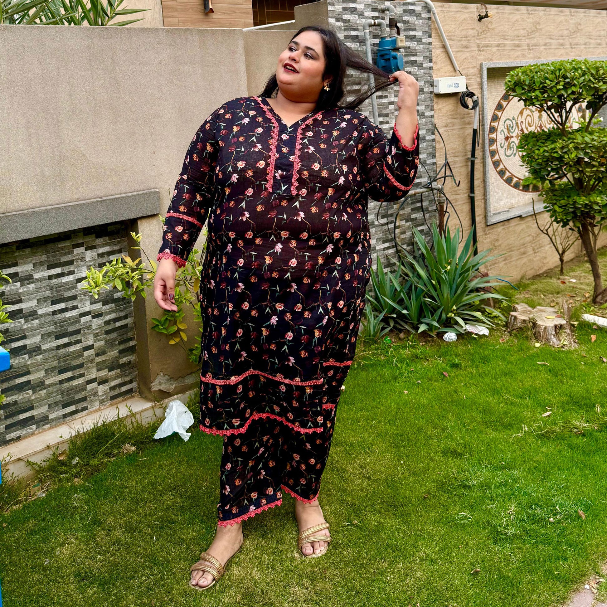 Midnight Bloom – Plus Size Stitched Floral Suit (2PC) PSW-9495