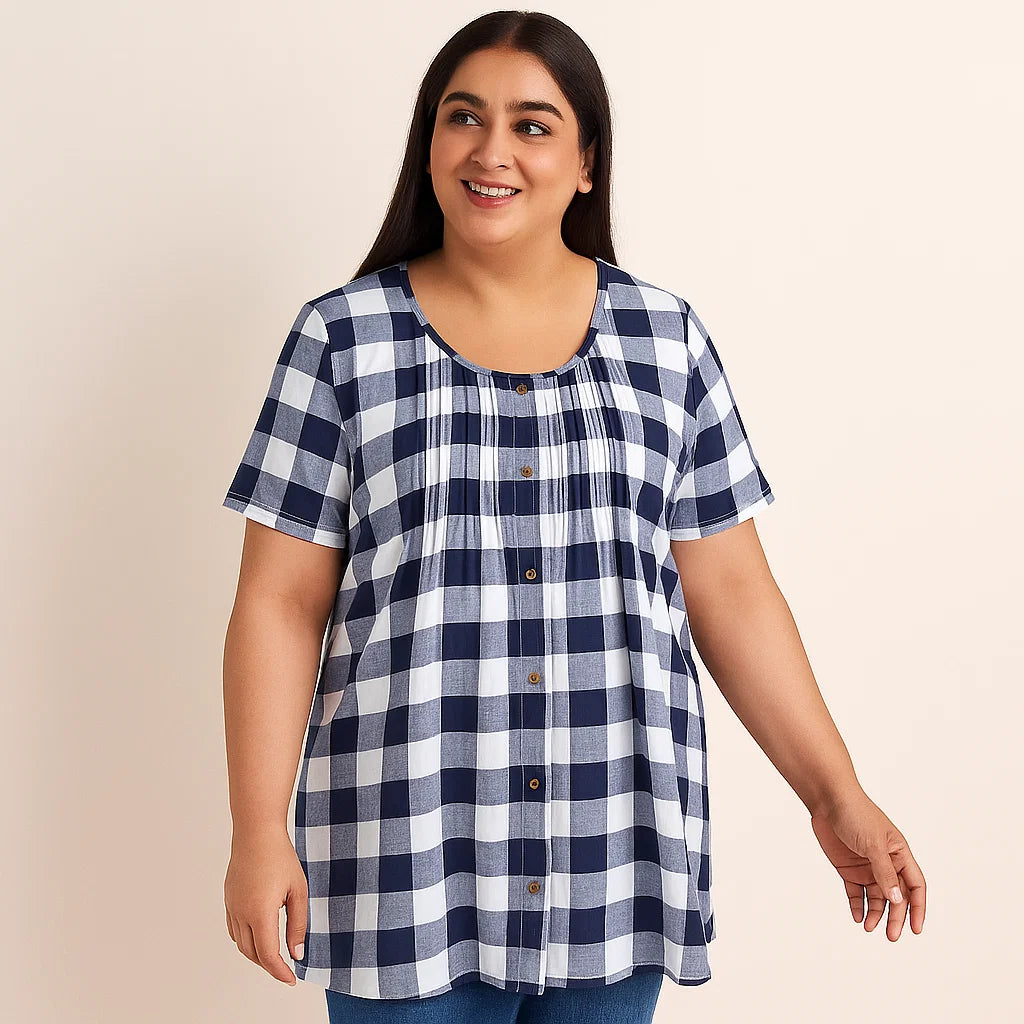 Navy Buffalo Plaid knit Pintucks Tunic PSW-4881