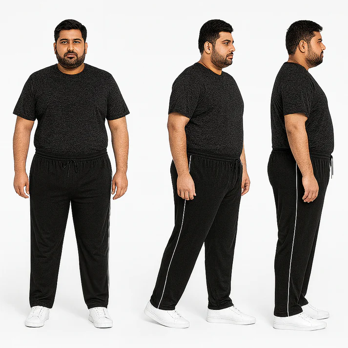 These Black Piped Track Pants are designed specifically for plus-size men who want comfort, style, and movement — all in one.