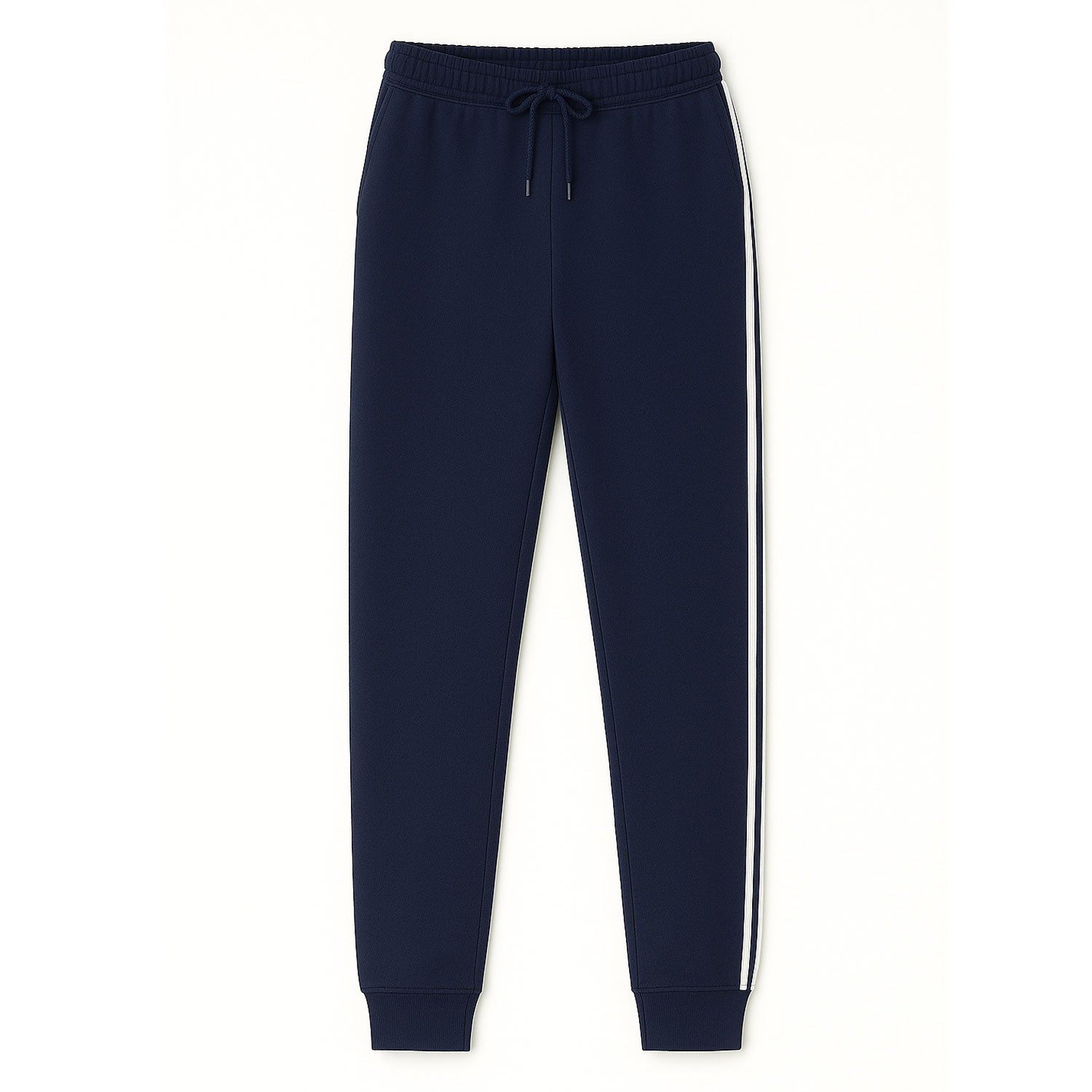 Navy Terry Side Stripe Cuffed Plus Size Trousers PSM-9847