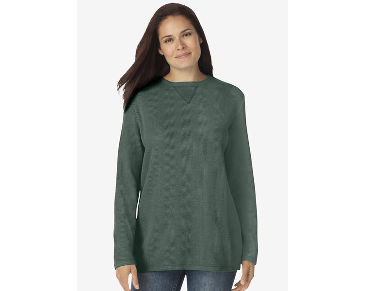 - Your favorite thermal fabric now comes in a sweatshirt style. Made in a relaxed fit with a classic V-stitched neckline, this promises to be your go-to for great texture, color and fit. Stay comfortable in this casual long-sleeved style.