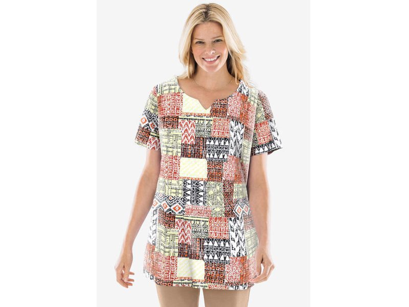 - Stunning pattern and a great fit with notched scoop neck and hem slits for easy movement.
