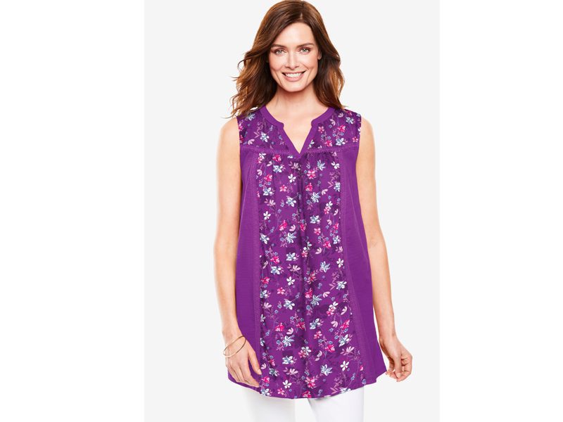 Purple Magenta Delicate Floral Sleeveless Notch Neck Tunic PSW-4963
