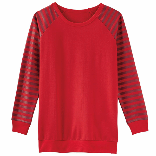 Red Fleece Sweatshirt with Striped Sleeves PSW-9108