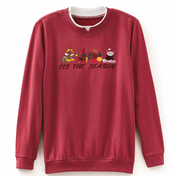 Red Novelty Embroidered Sweatshirt PSW-9105