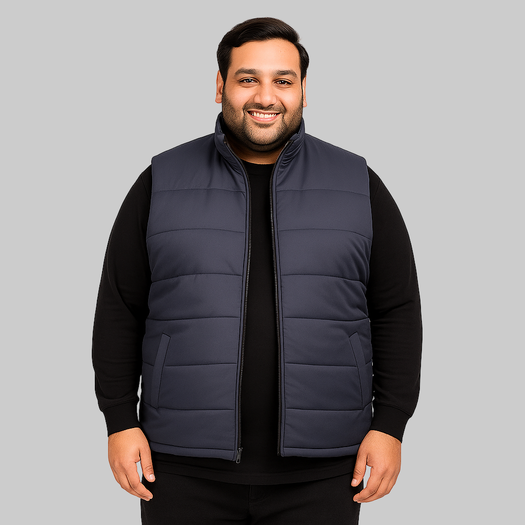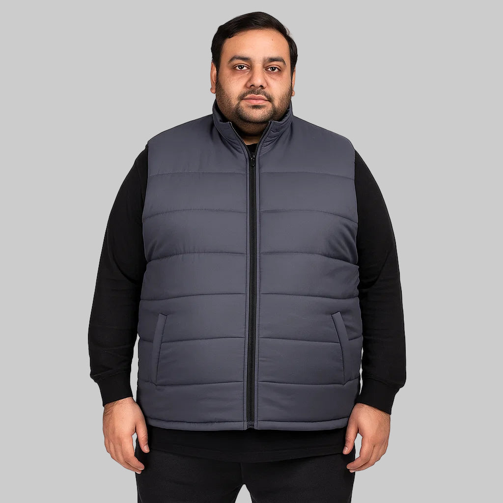 The Stealth Peak Plus-Size Sleeveless Puffer Jacket provides lightweight warmth and style in charcoal gray, with a zip-up front and side pockets. Ideal for layering in cooler weather. Delivery Time : 4-5 Working Days The Stealth Peak Plus-Size Sleeveless Puffer Jacket delivers warmth and style with its sleek charcoal gray design. Perfect for layering, this sleeveless puffer jacket features lightweight insulation to keep you comfortable without feeling bulky. The high collar and zip-up front provide additional protection against the cold, while the side pockets offer convenience and practicality. Whether you're heading out for an adventure or a casual day, this versatile jacket is designed for plus-size individuals who seek both function and style.