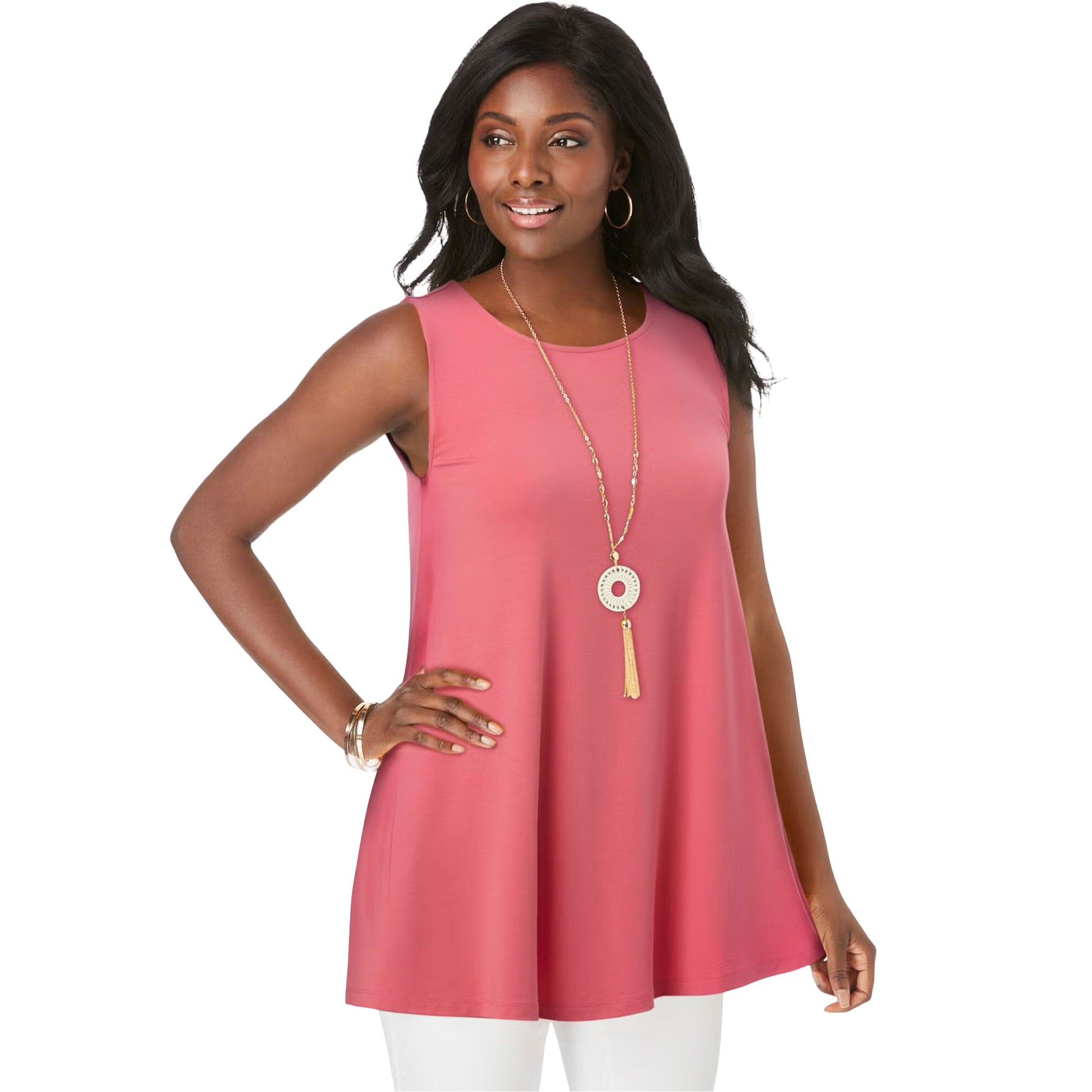 Tea Rose Stretch Knit Sleeveless Swing Tunic PSW-9591