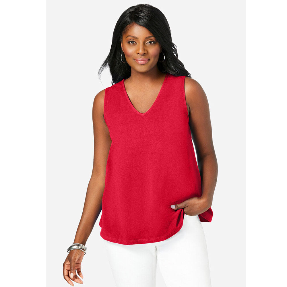 Vivid Red Stretch Cotton V-Neck Trapeze Tank PSW-7959