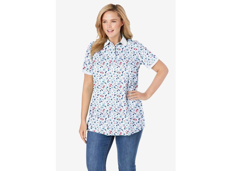White Lovely Ditsy Perfect Printed Short-Sleeve Polo Shirt PSW-7061
