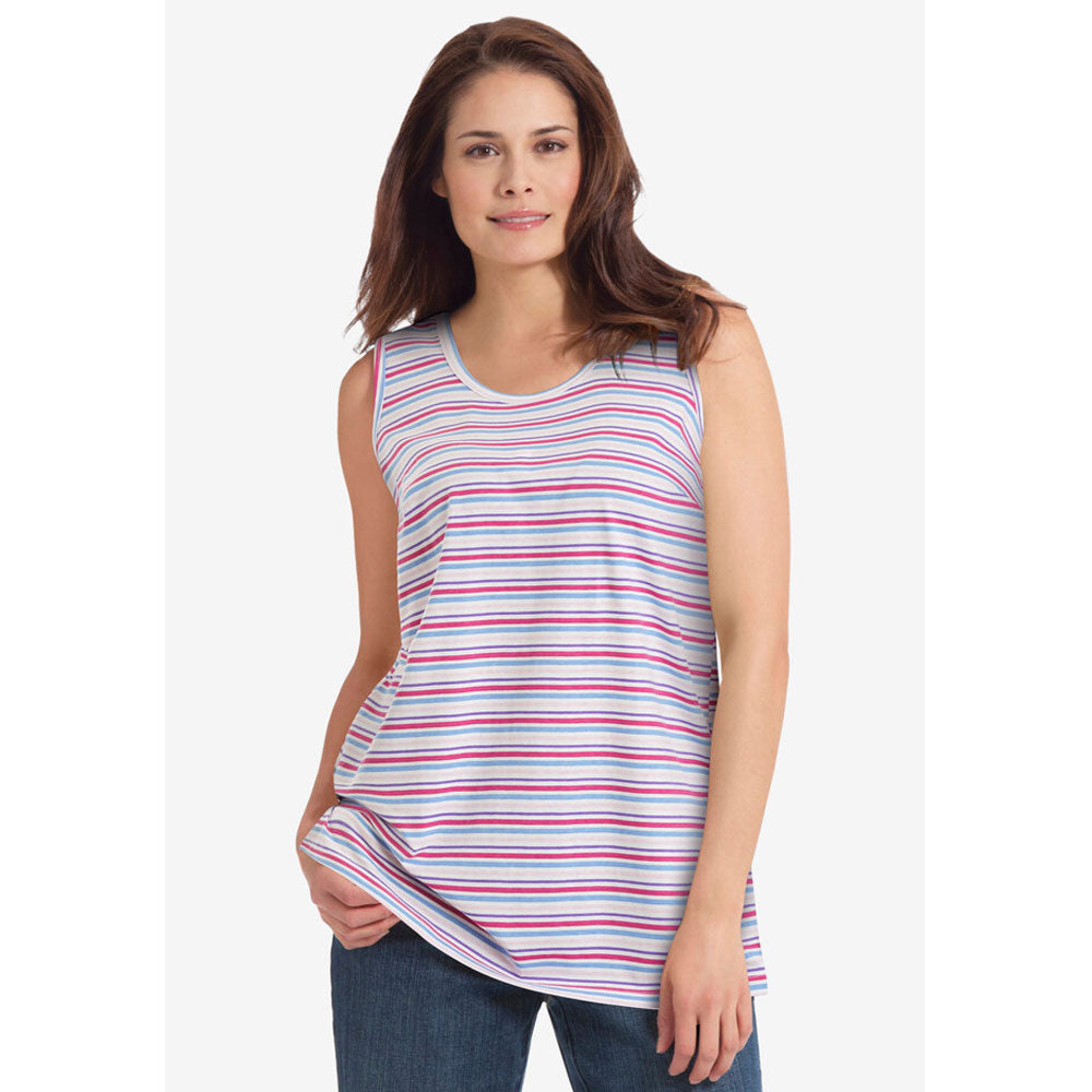White Multi Mini Stripe Scoopneck Tank PSW-8513